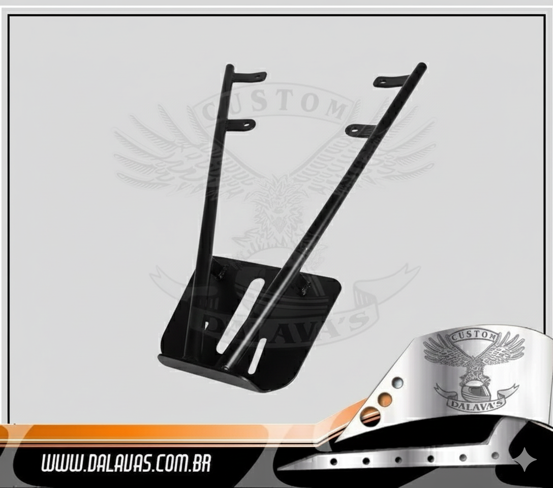 Confeccionado em aço carbono com acabamento preto texturizado, o bagageiro proporciona a possibilidade de levar bagagem;