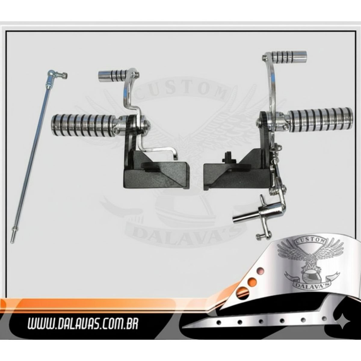 Acessórios confeccionado em aço carbono com acabamento em preto texturizado e cromo;
