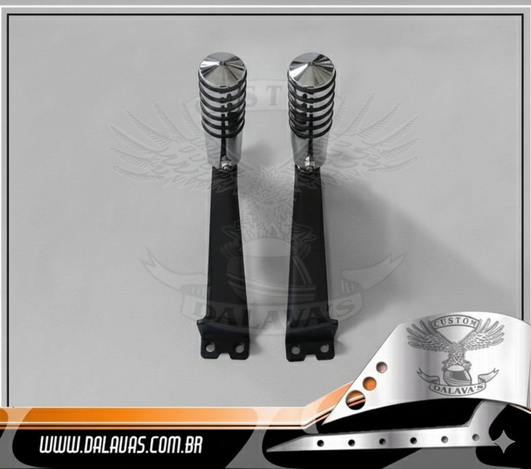 Acessório confeccionado em aço carbono, alumínio e demais materiais que complementam o conjunto;