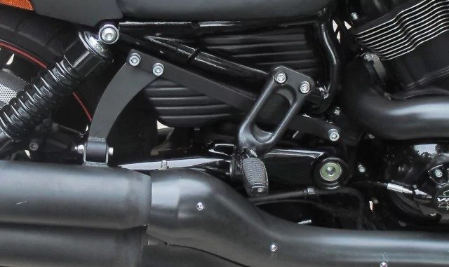 Descanso avançado para o garupa desenvolvido para os modelos Night Rod da montadora Harley Davidson.