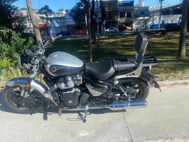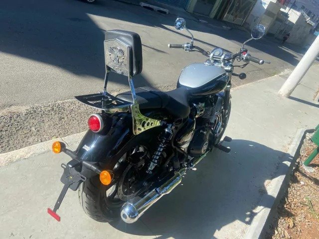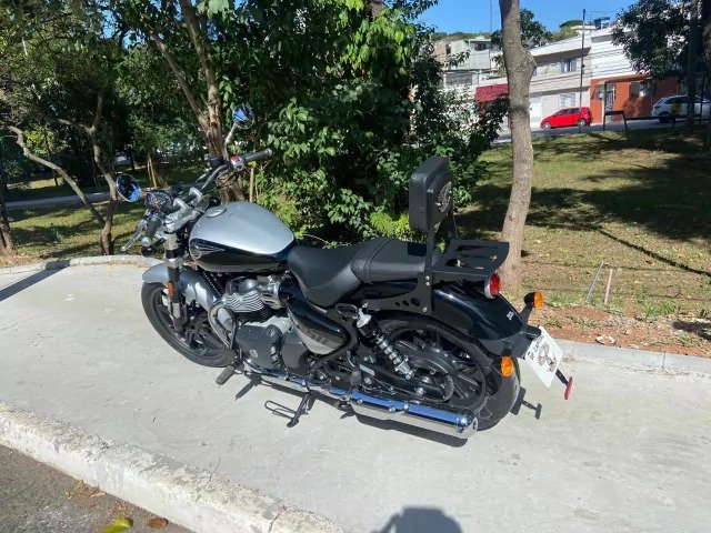 Encosto traseiro fixo preto desenvolvido para os modelos Meteor 650 da montadora Royal Enfield;