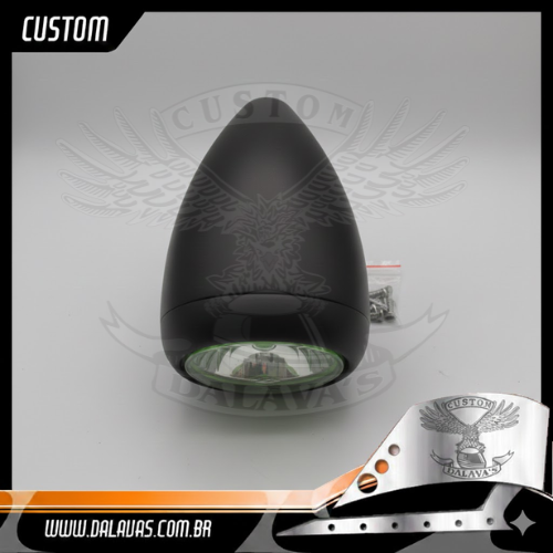 Farol Bullet, Base Retangular: 40x90mm c/ oblongos 8×30/8x60mm. Dica: 1)Ao fazer regulagens na altura e alinhamento do feixe de luz, solte os parafusos para não forçar a solda ponto e a carcaça.