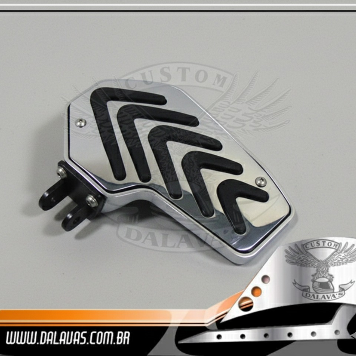 Plataforma Dianteira desenvolvida para os modelos Mirage 650 da montadora Kasinski. Confeccionada em alumínio, com alguns componentes em aço e outros em borracha. Dimensões da área útil da plataforma (Valores aproximados) : 22 x 12 cm Dimensões da área útil da plataforma Modelo Cromado (Valores aproximados) : 21 x 12 cm Para mais informações, consulte nossa equipe de vendas!
