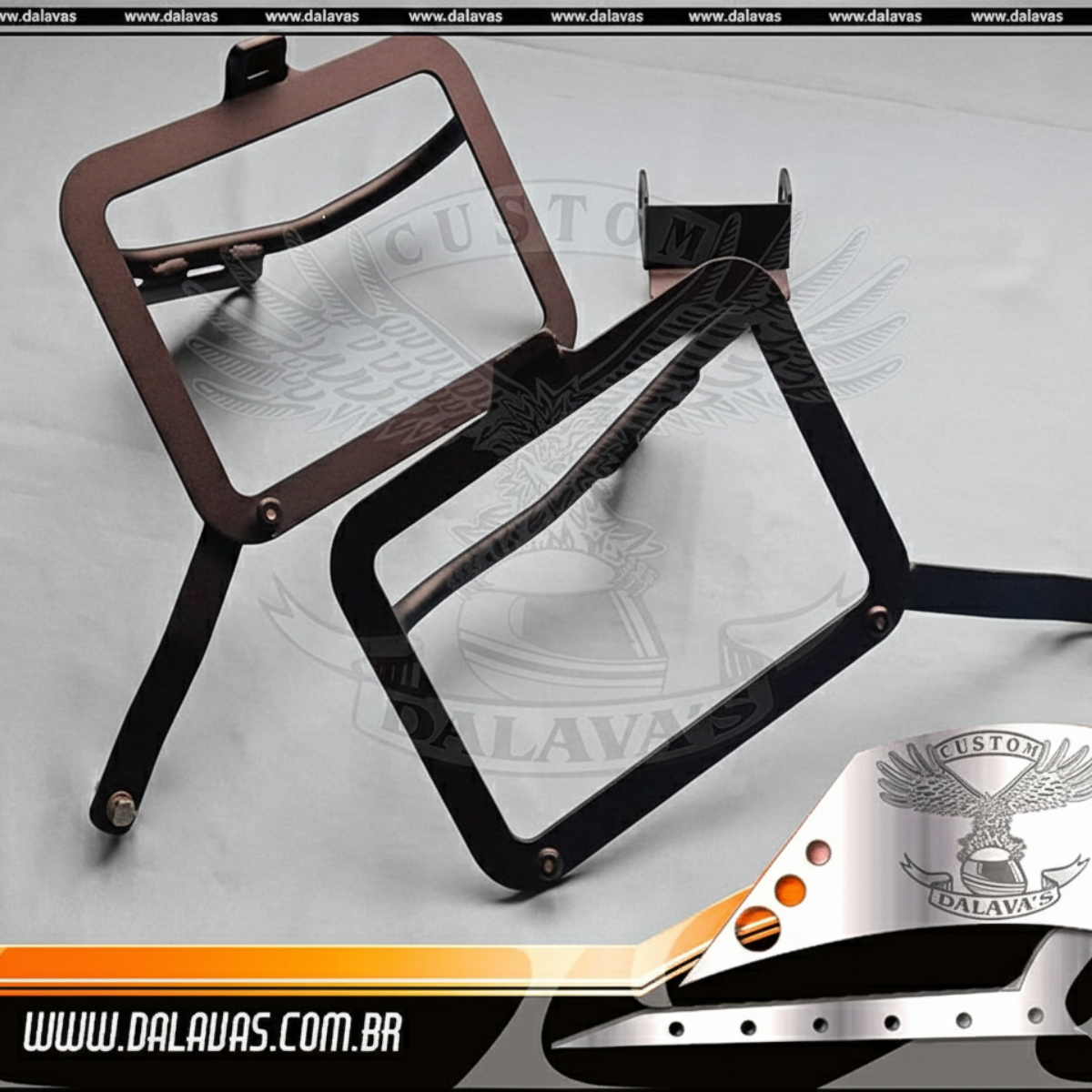 Confeccionado em aço com acabamento preto texturizado, acompanha um realocador de pisca.